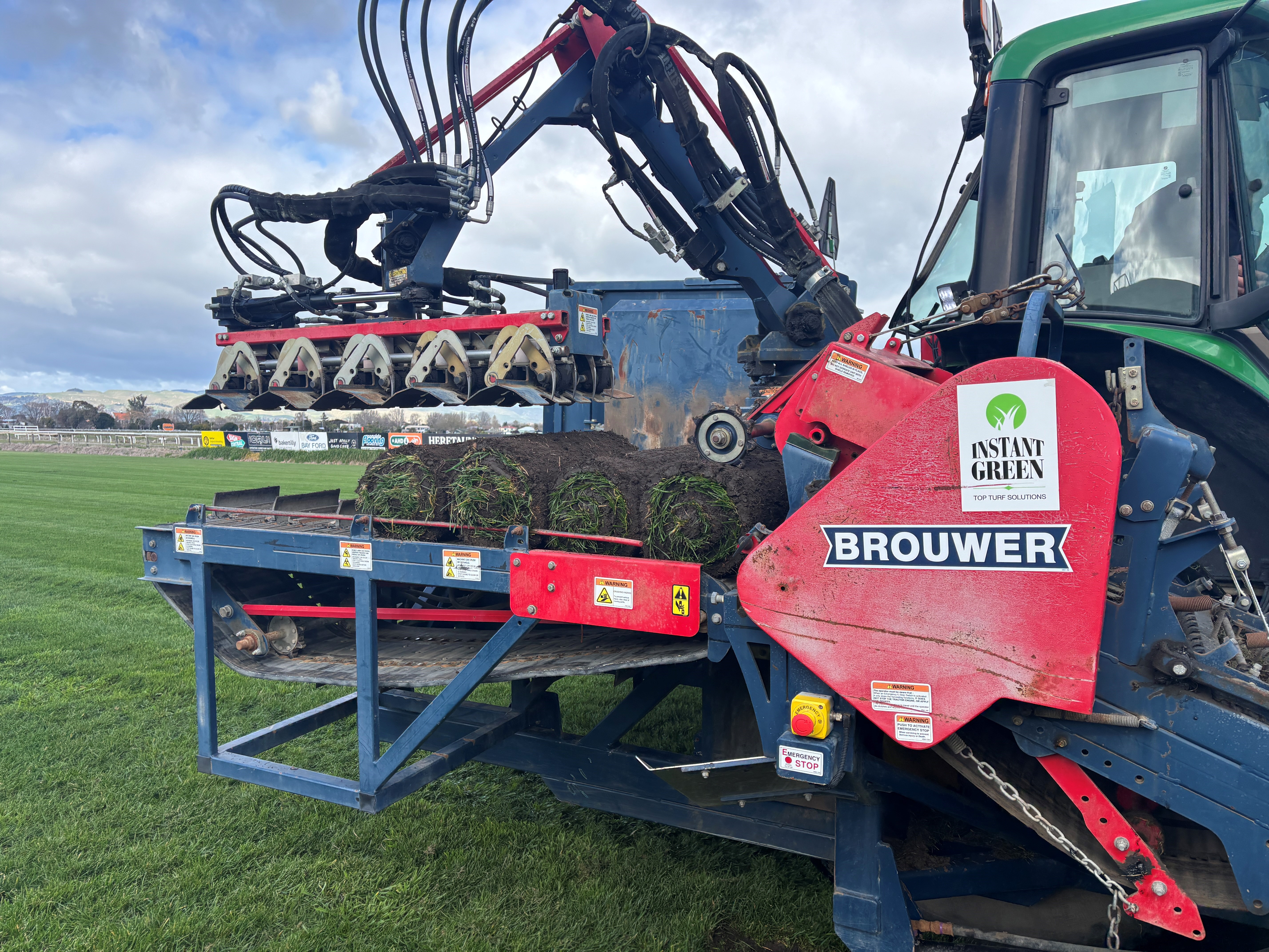 The machine rolls these slices for easy transportation and they are then stored in a designated area on the racecourse and unrolled so that they can take root again.