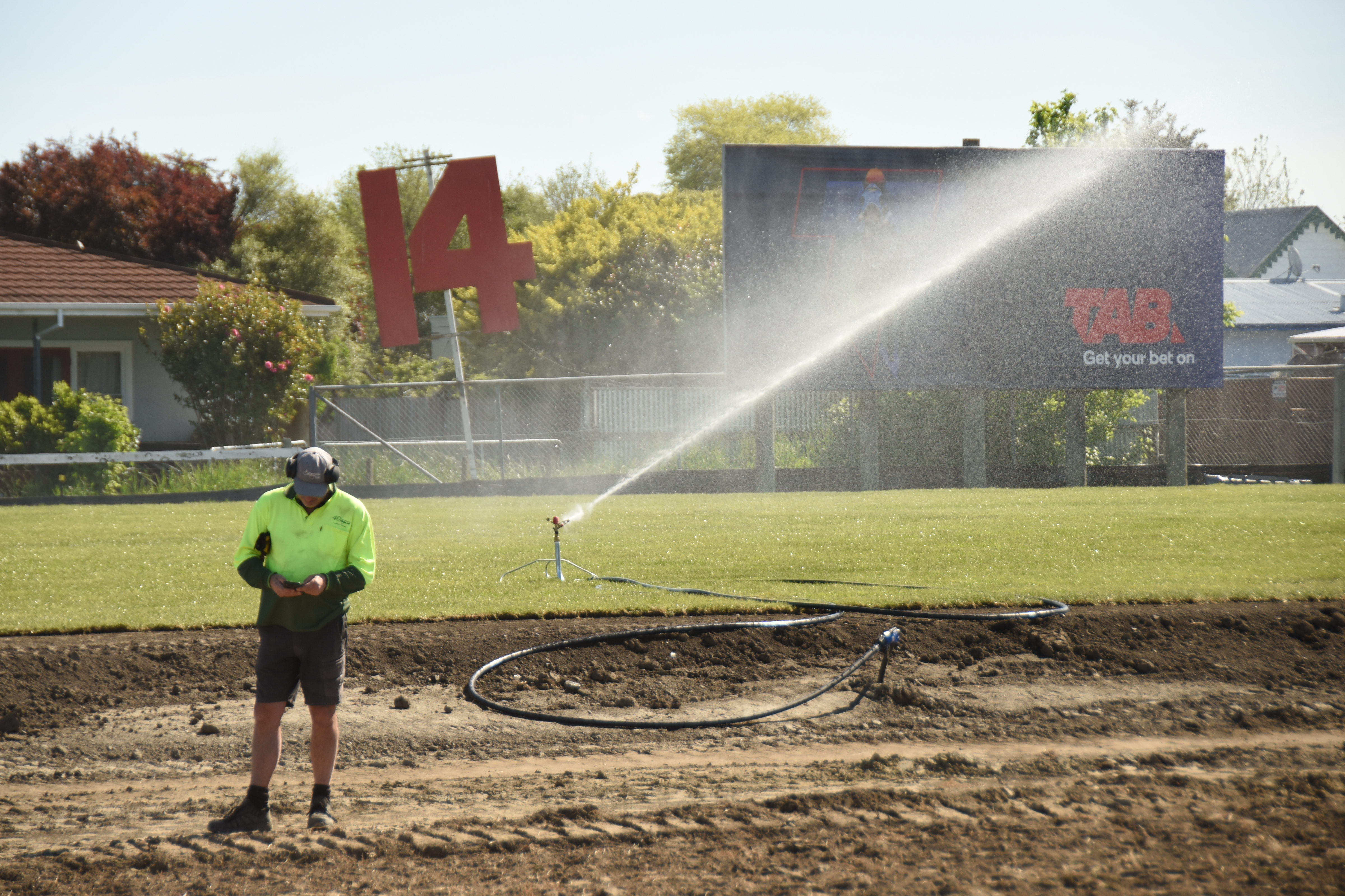 The re-cambering work at the Hastings racetrack is progressing well with fresh grass now re-laid in three sections, including the 1400m chute and 1400m bend on the course proper.
